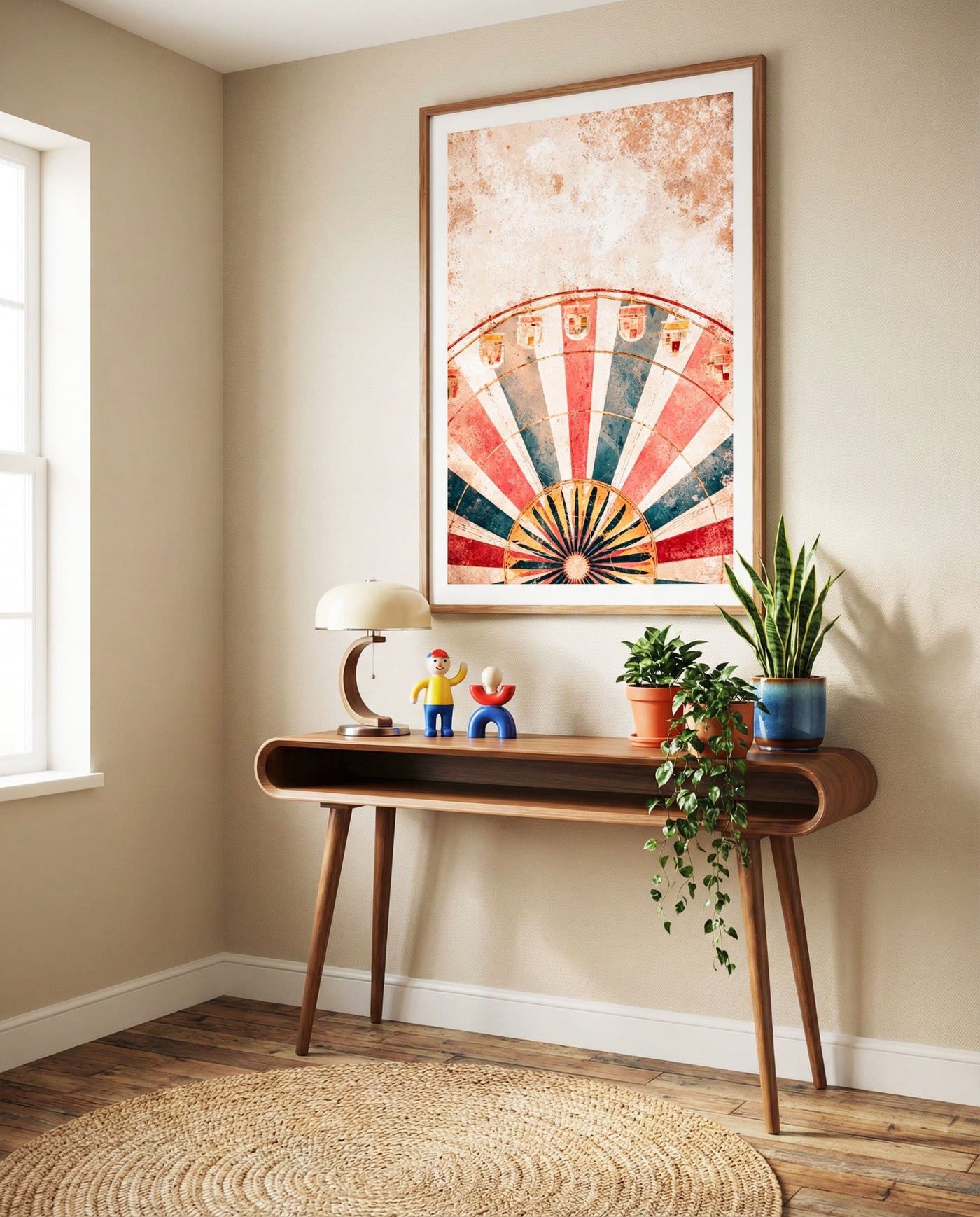 Step right up to the hottest decor trend of the year. 🎪 This "Retro Ferris Wheel" art print captures the whimsical spirit of the FunHaus aesthetic with a sophisticated vintage twist. The perfect statement piece for a playful living room, nursery, or eclectic gallery wall. Get the circus look without the clutter.