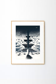 Blue-Black Himalayan Temple Sanctuary Wall Art - 8.5 by 11 inches