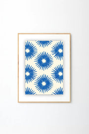 This modern abstract pattern wall art features bold, hand-drawn radial motifs in rich blue tones set against a soft neutral background. The repeating forms create a playful yet balanced rhythm, blending graphic simplicity with organic texture.
